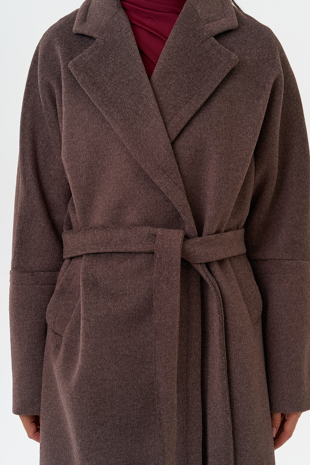 Силуэт - прямой Цвет - коричневый Длина - 115 см Вид полотна - тканое Состав полотна - шерсть 80%, п/э 20% Вид застежки - кнопки Крой воротника - английский воротник Фасон рукава - спущенное плечо, длинный Фасон кармана - прорезной Пояс |