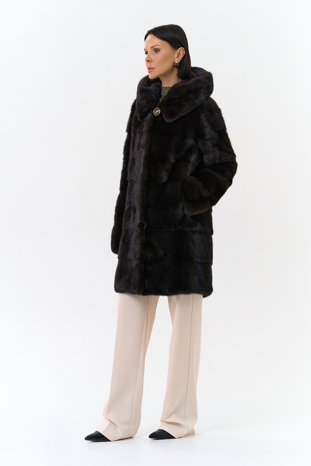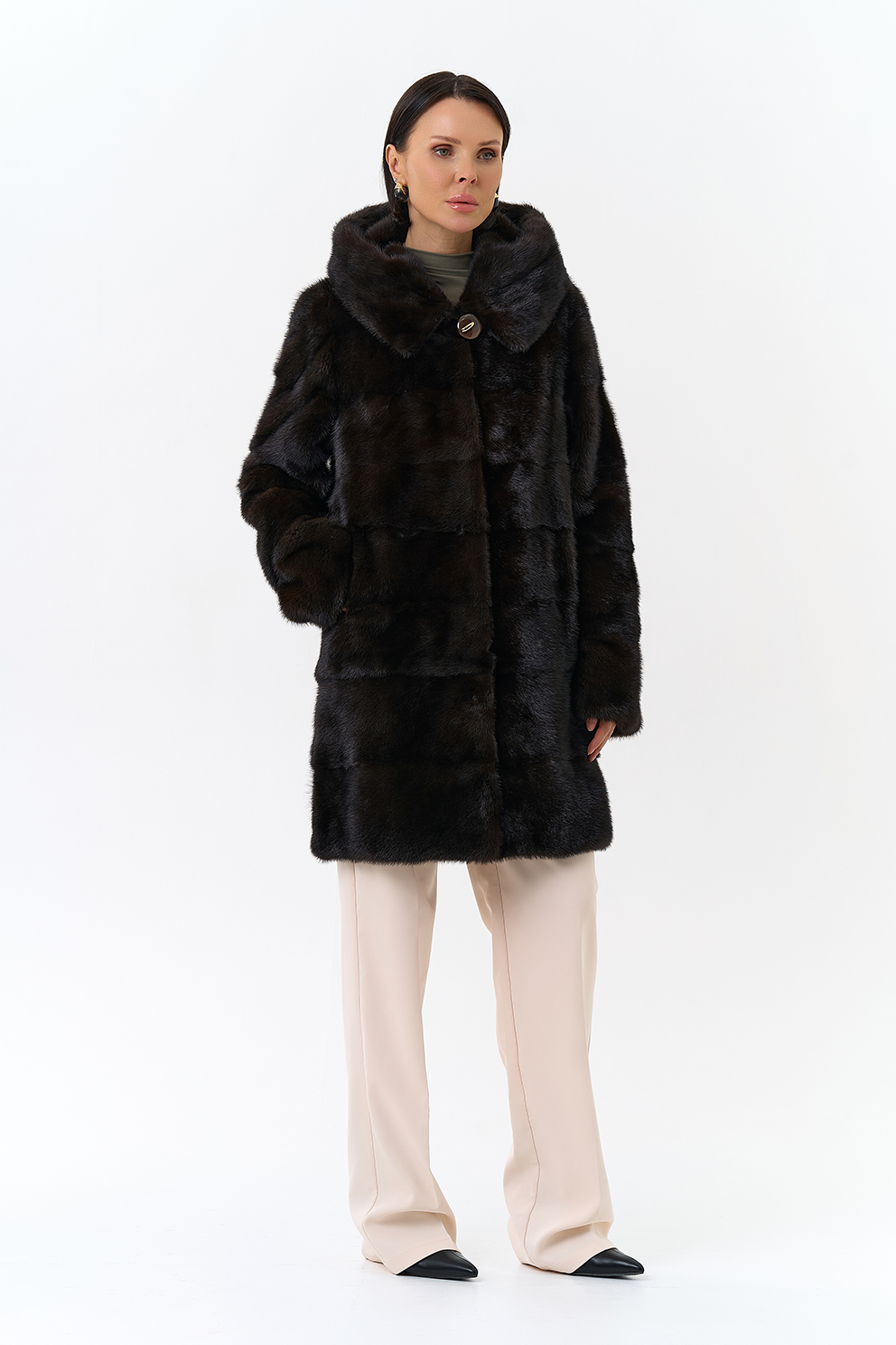 Норковая шуба в поперечном раскладе